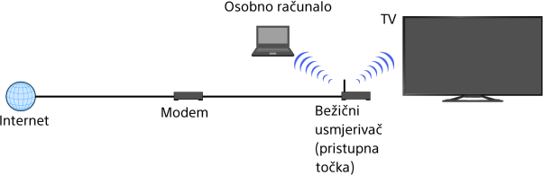 • Ako je televizor spojen s bežičnim usmjerivačem (ili pristupnom točkom) na 5 GHz, postavite opciju [Wi-Fi Direct] na [Isključeno]. Pritisnite tipku HOME, zatim odaberite [Postavke] → [Mreža] → [Wi-Fi Direct] → [Isključeno].