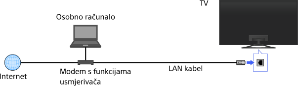 Žična LAN veza omogućuje vam pristup internetu i vašoj kućnoj mreži. Priključite LAN kabel na svoj televizor.