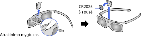 Prieš pradėdami naudotis aktyviaisiais 3D akiniais pirmą kartą, nuimkite maitinimo elemento izoliacinį lapelį.