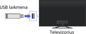 - Prie televizoriaus USB kabeliu jungiant „Sony“ skaitmeninį fotoaparatą, USB ryšio nustatymai jame turi būti [Auto] arba [Didelės talpos laikmena].