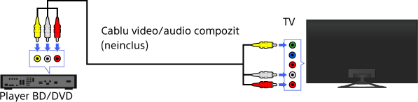 Dacă playerul BD/DVD dispune de jackuri compozite, conectaţi-l prin intermediul unui cablu video/audio compozit.