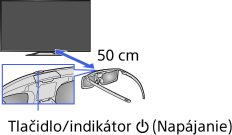 Ak aktívne 3D okuliare používate prvýkrát, podržte ich vo vzdialenosti 50 cm (od TV prijímača, TV prijímač zapnite a 2 sekundy podržte tlačidlo/indikátor