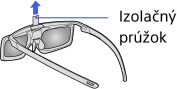 Pred prvým použitím aktívnych 3D okuliarov vyberte izolačný prúžok batérie.