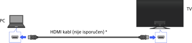 Povežite svoj lični računar sa HDMI kablom da biste uživali u muzici, slikama i ostalom sadržaju uskladištenom u njemu.