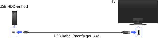 - Tilslutning af en USB HDD-enhed via en USB-hub understøttes ikke. Slut enheden direkte til tv'et.