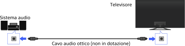 Collegare un sistema audio (es. sistema home theatre) con l’ingresso digitale del televisore, usando un cavo audio ottico.