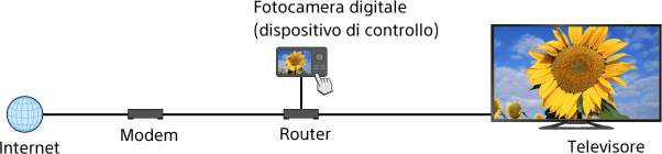 È possibile riprodurre file di foto/musica/video contenuti in un dispositivo di controllo (es. una fotocamera digitale) sullo schermo del televisore controllando direttamente il dispositivo di controllo. Il dispositivo di controllo deve essere compatibile con il sistema di rendering.