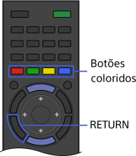Os botões coloridos e as funções disponíveis são indicados na parte inferior do ecrã.