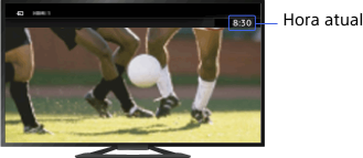 A hora atual é definida automaticamente se o televisor receber a hora de um sinal de emissão digital. Se o televisor não conseguir receber um sinal de emissão digital, defina a hora atual manualmente.