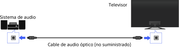 Conecte un sistema de audio (p. ej., sistema de sala de cine en casa) con entrada digital al televisor mediante un cable de audio óptico.