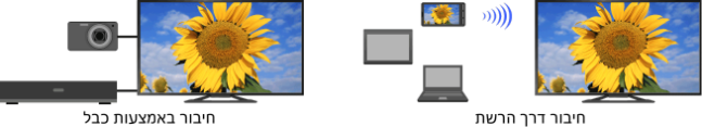 חבר התקנים שונים (למשל, מקליט BD, מצלמת סטילס דיגיטלית, מחשב, טלפון חכם, מחשב לוח) לטלוויזיה. תוכל ליהנות מהפעלת תוכן כגון תמונות ומוסיקה בהתקן המחובר.