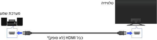 - בעת חיבור של מערכת שמע דיגיטלית תואמת-"BRAVIA" Sync עם טכנולוגיית Audio Return Channel (ARC), חבר אל HDMI IN 1 עם כבל HDMI. עם זאת, בעת חיבור מערכת שאינה תואמת ל-"BRAVIA" Sync או Audio Return Channel, יש צורך בחיבור שמע נוסף דרך DIGITAL AUDIO OUT (OPTICAL).