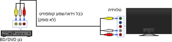 אם נגן ה-BD/DVD שלך מצויד בשקעי קומפוזיט, חבר אותו בעזרת כבל וידאו/שמע קומפוזיט.