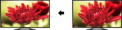 [מלא]: הגדלה אופקית של התמונה כך שתמלא את המסך כאשר אות הכניסה הוא 4:3. כאשר אות הכניסה הוא 16:9 (ממקור בהפרדה גבוהה), בחר באפשרות זו כדי להציג את תמונת ה-16:9 בגודלה המקורי.