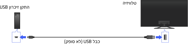 - לא ניתן לחבר התקן זיכרון USB דרך מפצל USB. חבר את ההתקן ישירות אל הטלוויזיה.