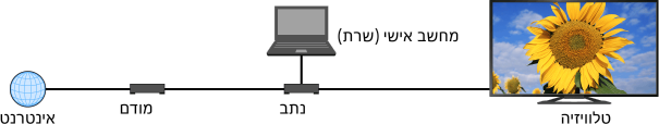באפשרותך להציג או לנגן קובצי תמונה/מוזיקה/וידאו המאוחסנים של שרת (לדוגמה מחשב אישי) המחובר לאותה רשת ביתית שאליה מחוברת הטלוויזיה.