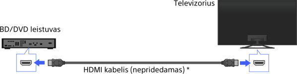 Optimaliai vaizdo kokybei užtikrinti rekomenduojamas HDMI ryšys. Jei BD ar DVD leistuve yra įtaisyta HDMI jungtis (lizdas), prijunkite prie jos HDMI kabelį.
