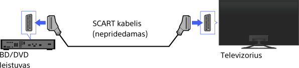 Jei BD ar DVD leistuve yra įtaisyta SCART jungtis (lizdas), prijunkite prie jos SCART kabelį.