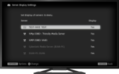 pasirinkite serverį, kuris turėtų arba neturėtų būti rodomas Namų meniu, ir paspauskite mygtuką