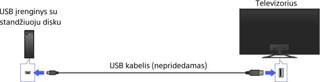 • USB HDD įrenginio prijungimas prie USB šakotuvo negalimas. Prijunkite įrenginį tiesiogiai prie televizoriaus.