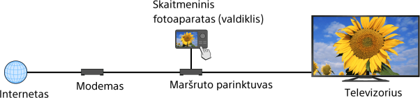 1. Prijunkite televizorių prie namų tinklo vadovaudamiesi skyriuje „Prisijungimas prie interneto“ nurodytais veiksmais.