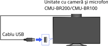 - Puteţi utiliza numai unitatea opţională cu cameră şi microfon CMU-BR200/CMU-BR100. Alte modele nu sunt acceptate.