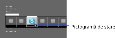 Când se selectează [Skype] în [Aplicaţii] din Meniul principal, alături de [Skype] se afişează o pictogramă de stare, indicând starea noului dumneavoastră cont Skype.