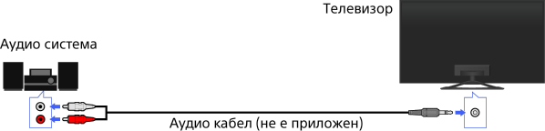 Свържете аудио система (напр. усилвател) към телевизора чрез аудио кабел.