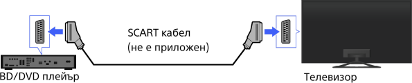 Ако вашият BD/DVD плейър има SCART гнездо, свържете го чрез SCART кабел.
