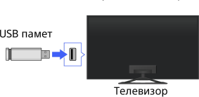 - При свързване на Sony цифров фотоапарат към телевизора с USB кабел, настройките за USB връзка на фотоапарата трябва да са настроени на режим [Автом.] или [Памет].