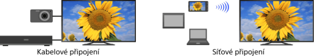 Připojte k televizoru různá zařízení (např. BD rekordér, digitální fotoaparát, počítač, smartphone, tablet). Na připojeném zařízení si budete moci užívat přehrávání obsahu, jako jsou fotografie a hudba.