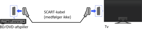 Hvis din BD/dvd-afspiller har et SCART-stik, skal du tilslutte den ved hjælp af et SCART-kabel.