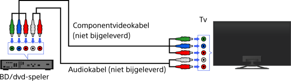 Als uw BD/dvd-speler over componentvideo-aansluitingen beschikt, sluit deze dan aan op de tv met een componentvideokabel en een audiokabel.