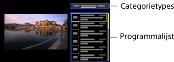 -knoppen om het gewenste categorietype te selecteren.Selecteer het gewenste programma in de programmalijst met de PROG +/- of