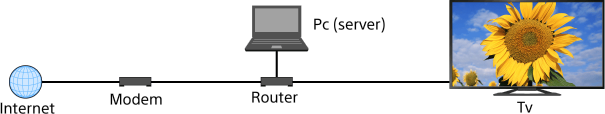 U kunt foto-, muziek- en videobestanden weergeven die zijn opgeslagen op een server (bv. pc) die is aangesloten op hetzelfde thuisnetwerk als dat waarop de tv is aangesloten.