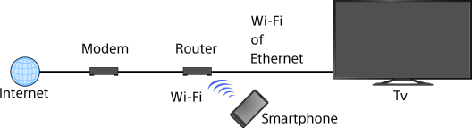 U kunt de tv met een mobiel apparaat bedienen wanneer de applicatie "TV SideView" geïnstalleerd is. U kunt de tv bekijken terwijl u de aanraakfuncties van een mobiel apparaat, zoals een smartphone of tablet, gebruikt. Om uw mobiele apparaat als afstandsbediening voor de tv te gebruiken, registreert u het bij de tv als een afstandsbedieningsapparaat. (Registratie is alleen de eerste keer vereist.)