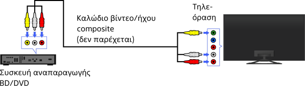 Αν η συσκευή αναπαραγωγής BD/DVD που διαθέτετε έχει υποδοχές composite, συνδέστε την χρησιμοποιώντας ένα καλώδιο εικόνας/ήχου composite.