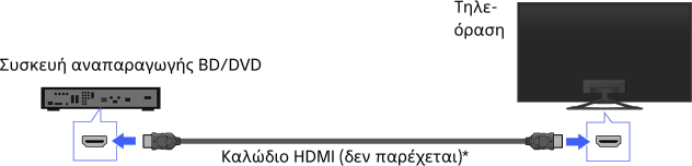 Συνιστάται σύνδεση HDMI για άριστη ποιότητα εικόνας. Αν η συσκευή αναπαραγωγής BD/DVD που διαθέτετε έχει υποδοχή HDMI, συνδέστε την χρησιμοποιώντας ένα καλώδιο HDMI.