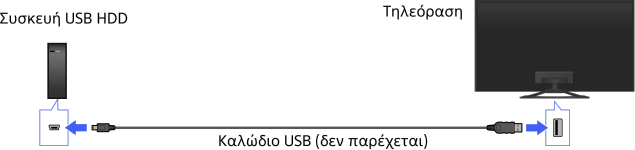 - Δεν υποστηρίζεται η σύνδεση μιας συσκευής USB HDD μέσω διανομέα USB. Συνδέστε τη συσκευή απευθείας με την τηλεόραση.