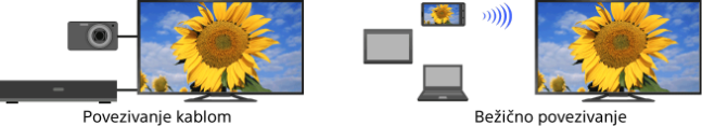 Povezivanje različitih uređaja s TV-om (npr. Blu-ray snimač, digitalni fotoaparat, računalo, pametni mobitel, tablet). Možete uživati u prikazu sadržaja, poput slika i glazbe, sa povezanog uređaja na na zaslonu Vašeg TV-a.