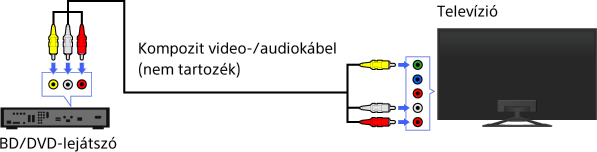 Ha a BD/DVD-lejátszója rendelkezik kompozit-csatlakozókkal (aljzatokkal), csatlakoztassa azt egy kompozit video-/audiokábel használatával.
