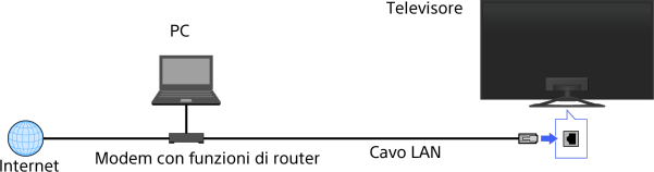 - Connessione via cavo (mediante cavo LAN)