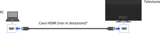 Collegare il PC con un cavo HDMI per riprodurre musica, immagini e altri contenuti memorizzati in esso.