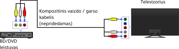 Jei BD ar DVD leistuve yra įtaisytos kompozitinės jungtys (lizdai), prijunkite prie jų vaizdo ir garso kabelį.