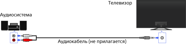 Подключите аудиосистему (например, усилитель) к телевизору с помощью аудиокабеля.