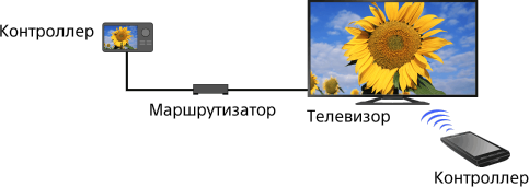 Включив функцию renderer, можно воспроизвести фотографии/музыку/видео с управляющего устройства (например, цифровой фотокамеры) на экране телевизора, управляя непосредственно устройством. Кроме того, можно использовать мобильное устройство (например, смартфон) в качестве пульта дистанционного управления телевизором по домашней сети.