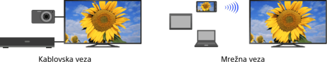 Povežite različite uređaje (npr. BD rikorder, digitalni fotoaparat, lični računar, smart mobilni telefon, tablet) sa TV-om. Možete da uživate u reprodukovanju sadržaja kao što su slike i muzika na povezanom uređaju.