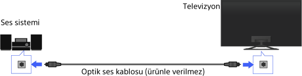 Dijital girişi bulunan bir ses sistemini (örn. ev sinema sistemi) bir optik ses kablosu kullanarak televizyona bağlayın.