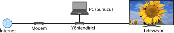 Televizyonla aynı ev ağına bağlı olan bir sunucudaki (örn. PC) fotoğraf/müzik/video dosyalarını oynatabilirsiniz.