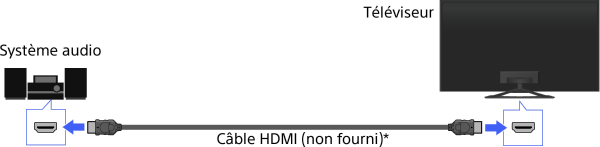 Raccordez un système audio (par exemple, un système home cinéma) avec sortie HDMI au téléviseur à l’aide d’un câble HDMI.